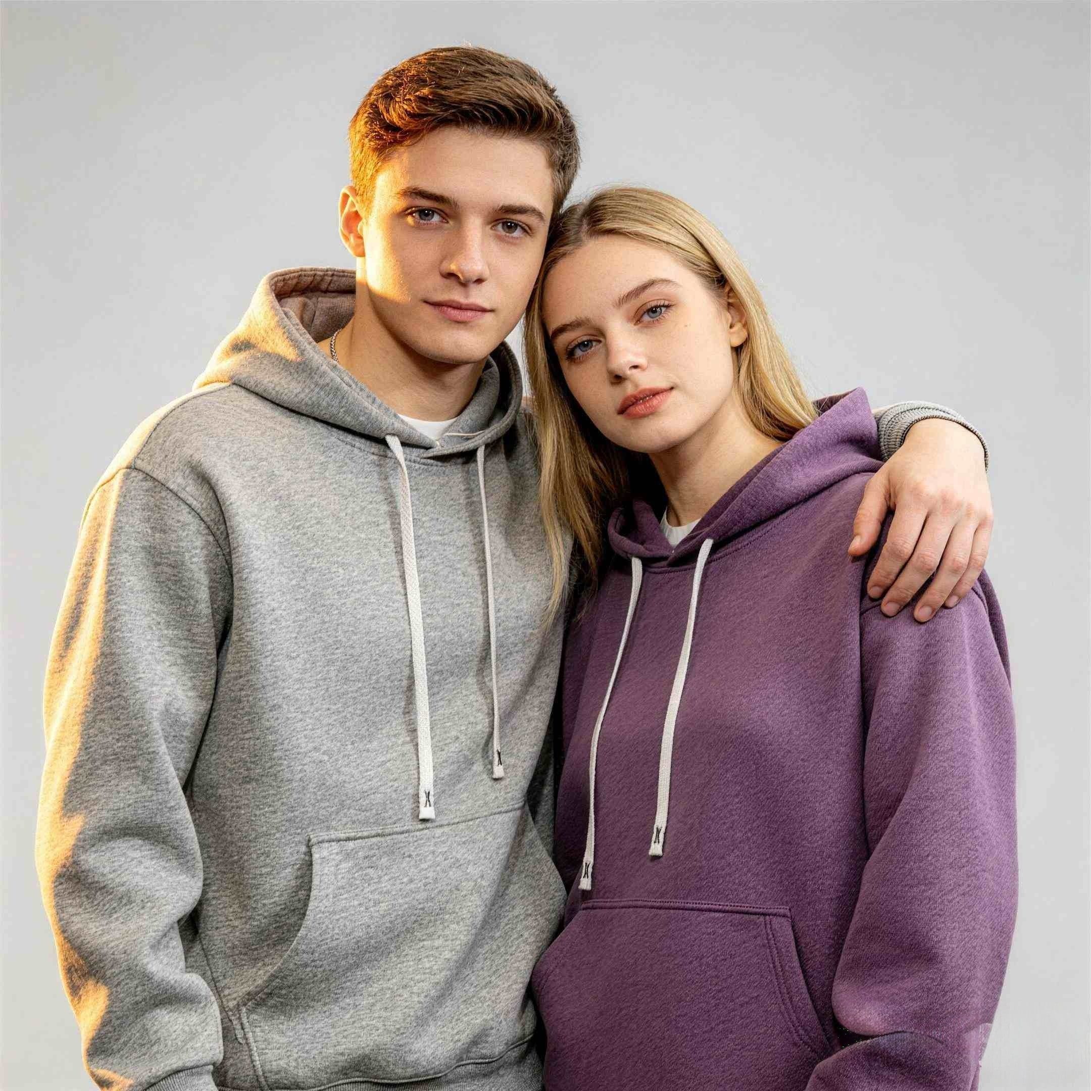 Our custom hoodies wholesale MOQ starts at 50 pieces per style for blank fleece and 100 pieces for embroidered or printed designs.