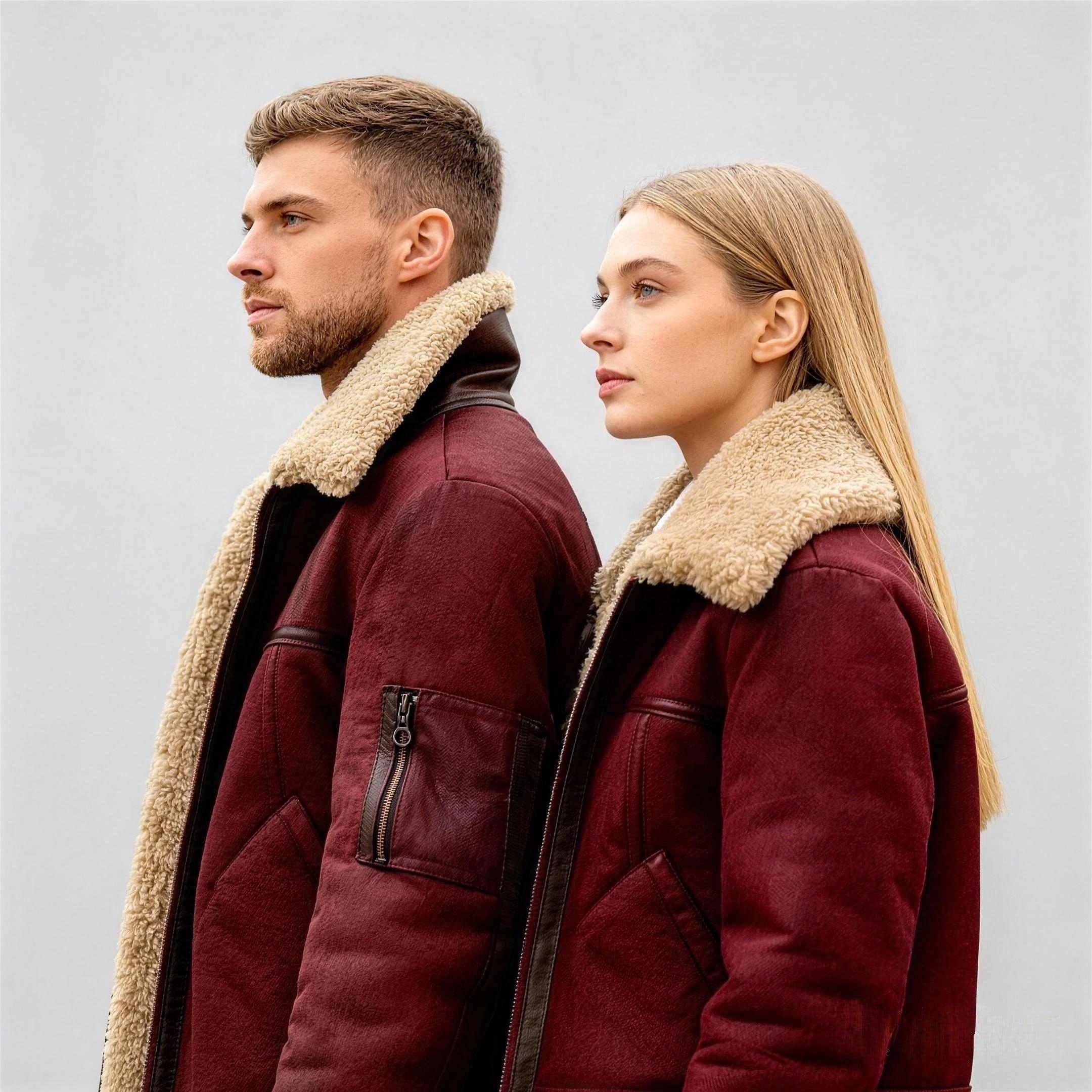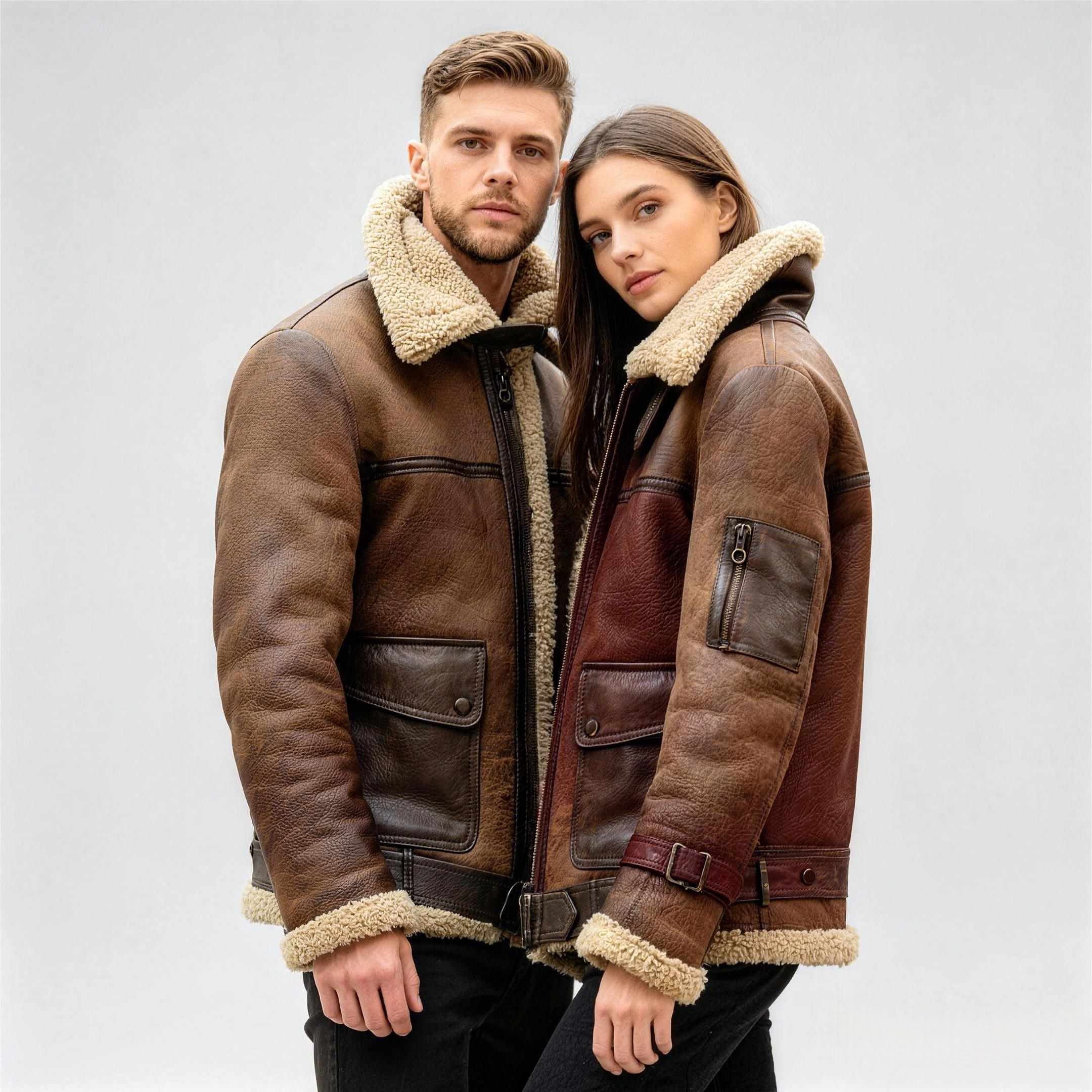 Fleece-lined jackets wholesale with shearling fur and leather for winter brands.