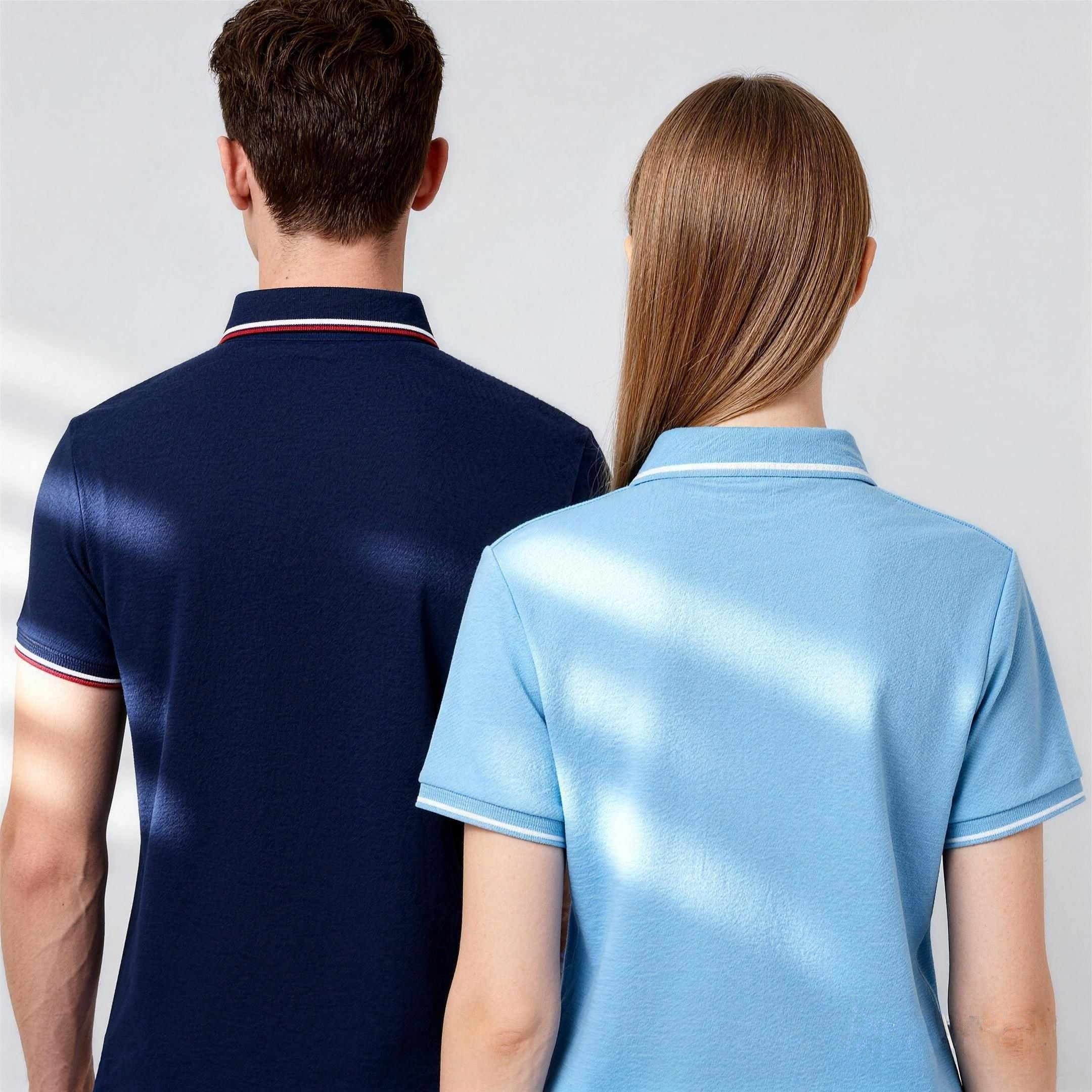 We provide 100% cotton pique, cotton-polyester blends, and moisture-wicking tech fabrics for custom polo shirts wholesale, with weights from 180-220gsm for professional comfort.