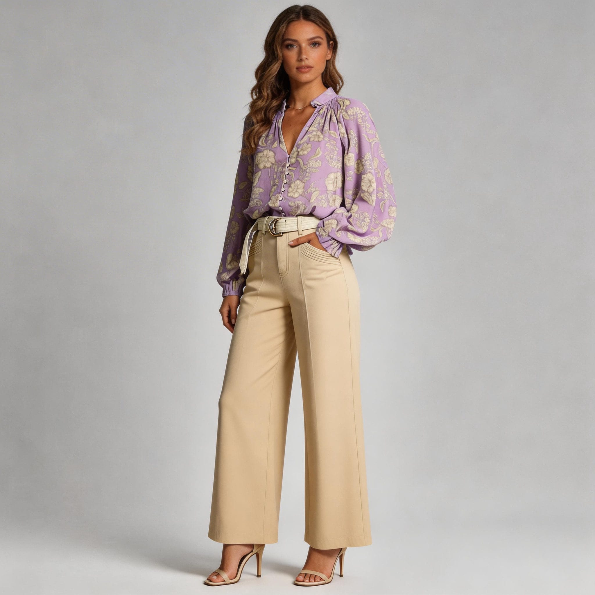 Style with Wide-Leg Trousers: Create a polished, professional look by styling the blouse with wide-leg trousers in a neutral color. Add a belt to accentuate the waist and complete the ensemble, ideal for office settings or business meetings.