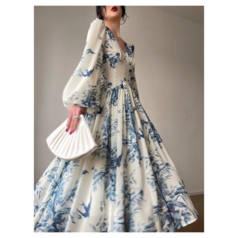 Step into poetic elegance with this stunning floral print midi dress, a perfect embodiment of romantic charm and refined grace. Crafted from premium materials with exquisite craftsmanship, this dress promises a head – turning appearance for any spring or summer occasion.