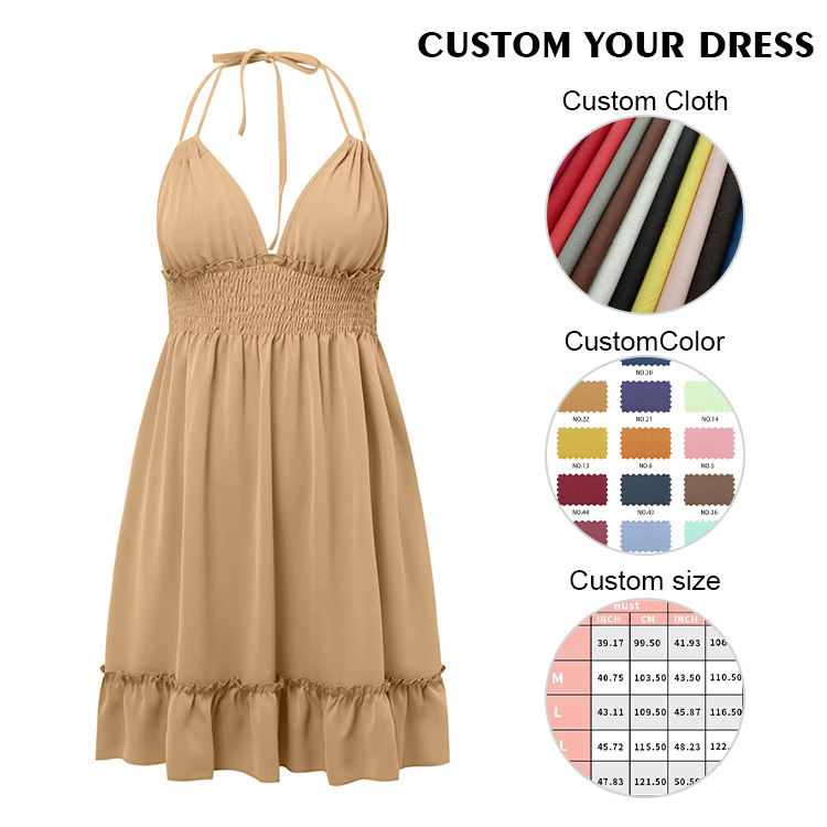 Make a statement with this Deep V-neck Ruffled Sleeveless Mini Dress, where style meets comfort in every detail!