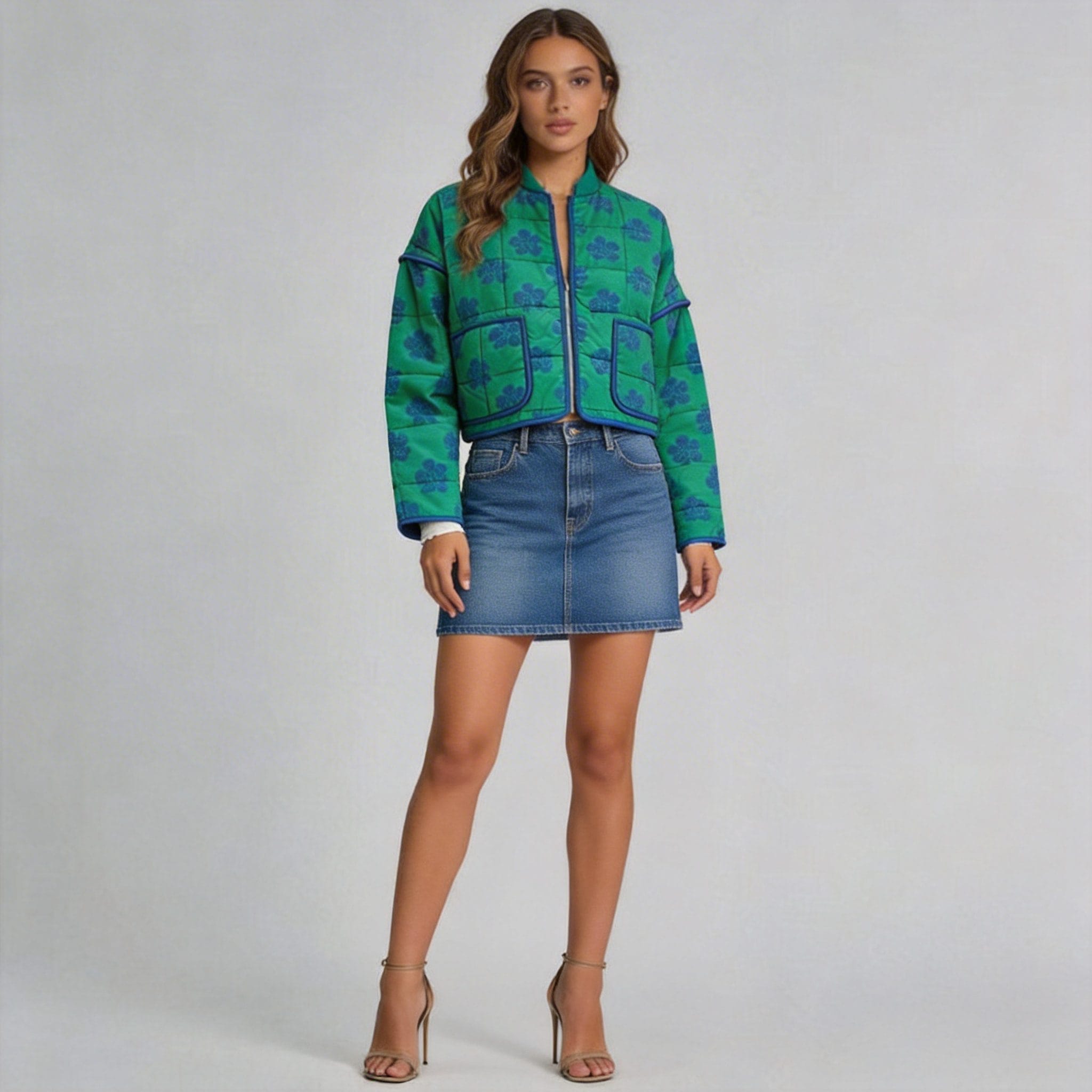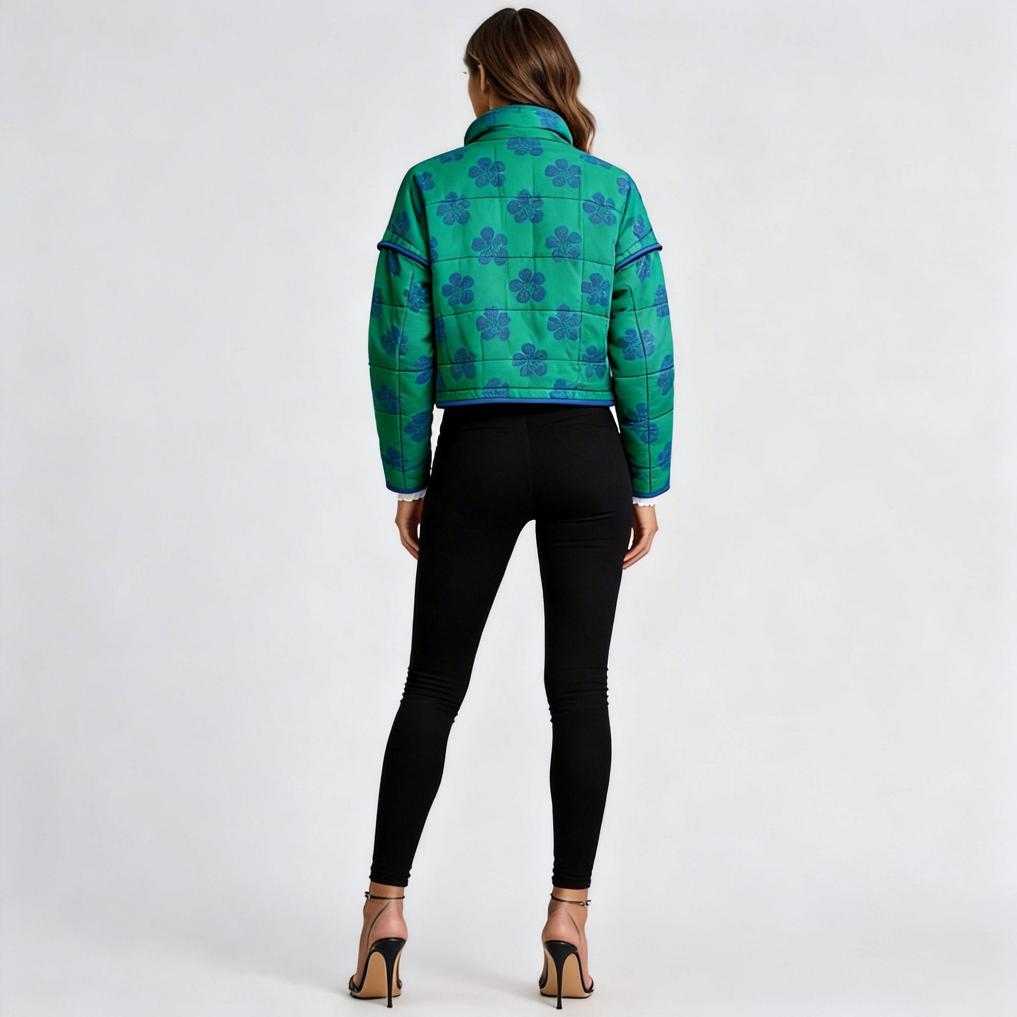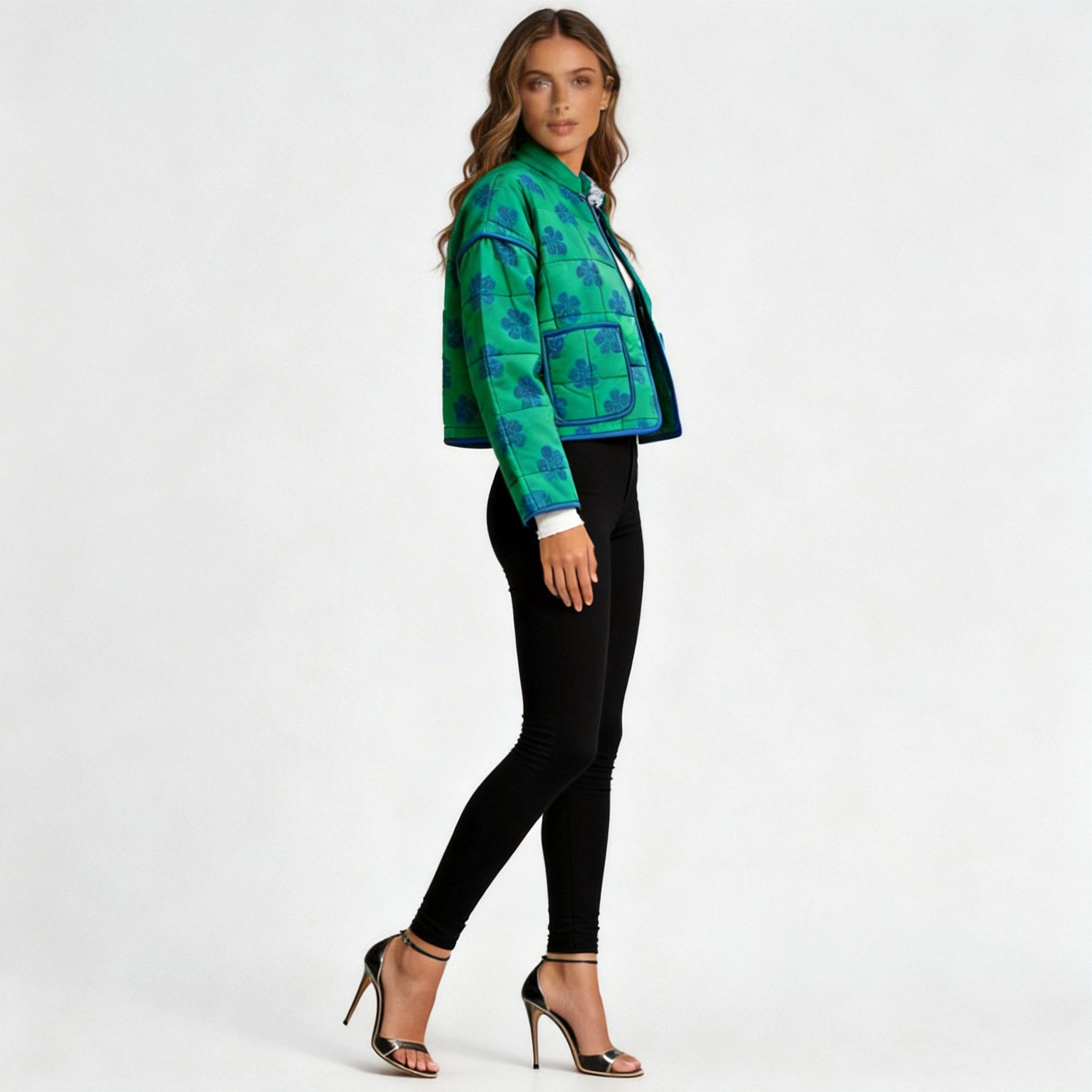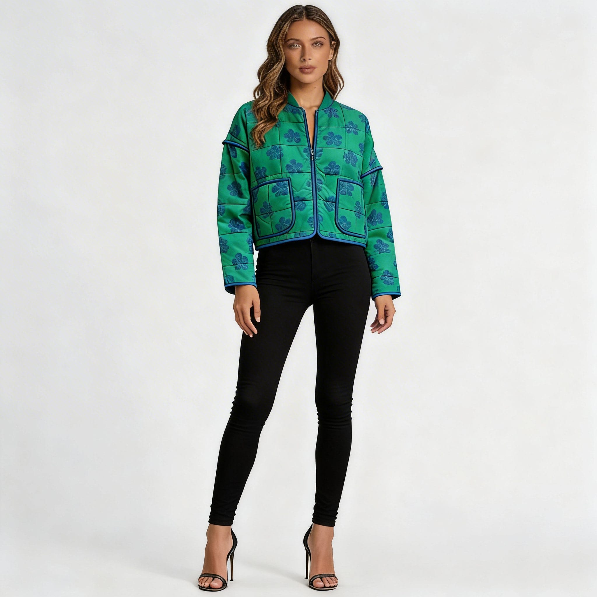 Green Floral Print Quilted Women’s Jacket – OEM & Custom Apparel