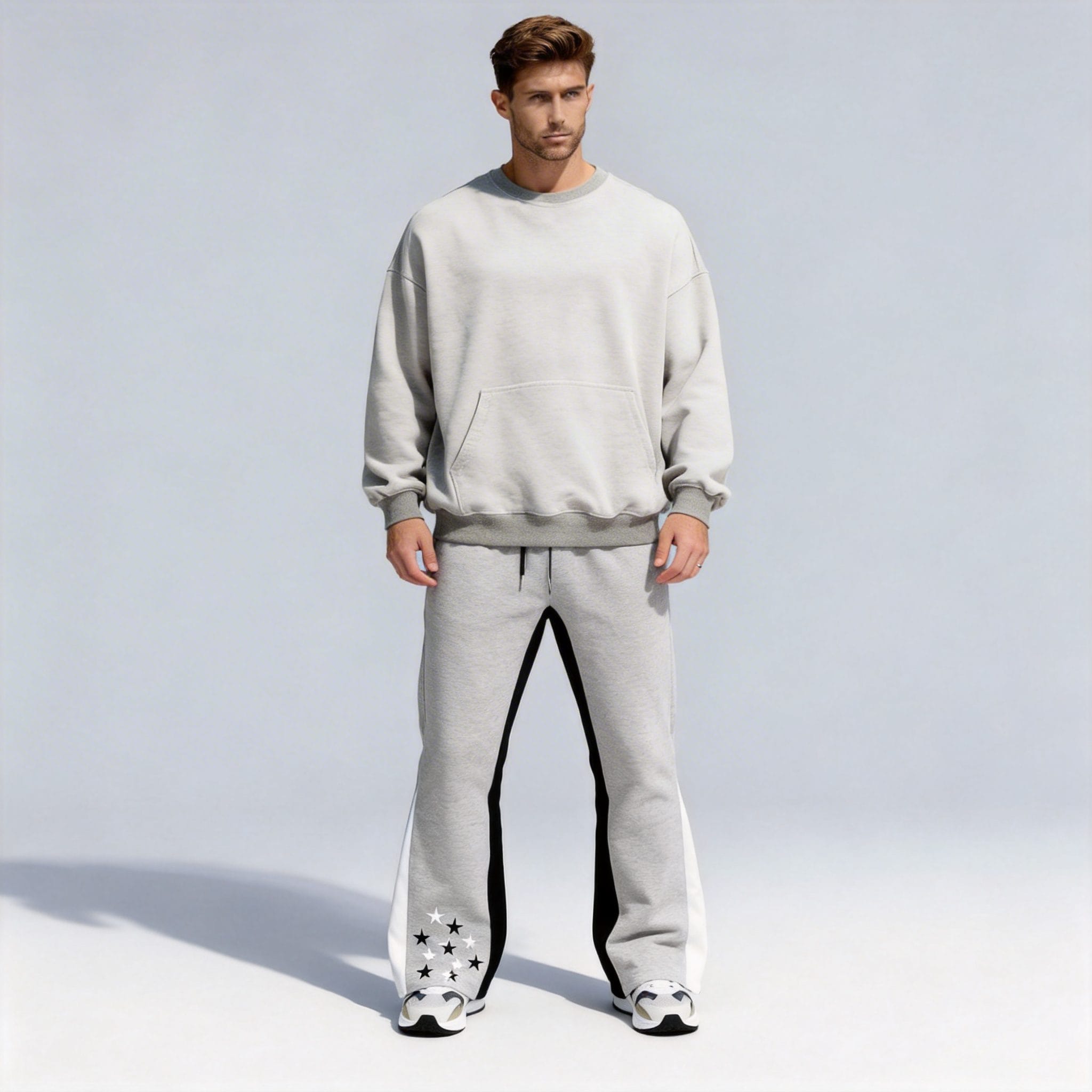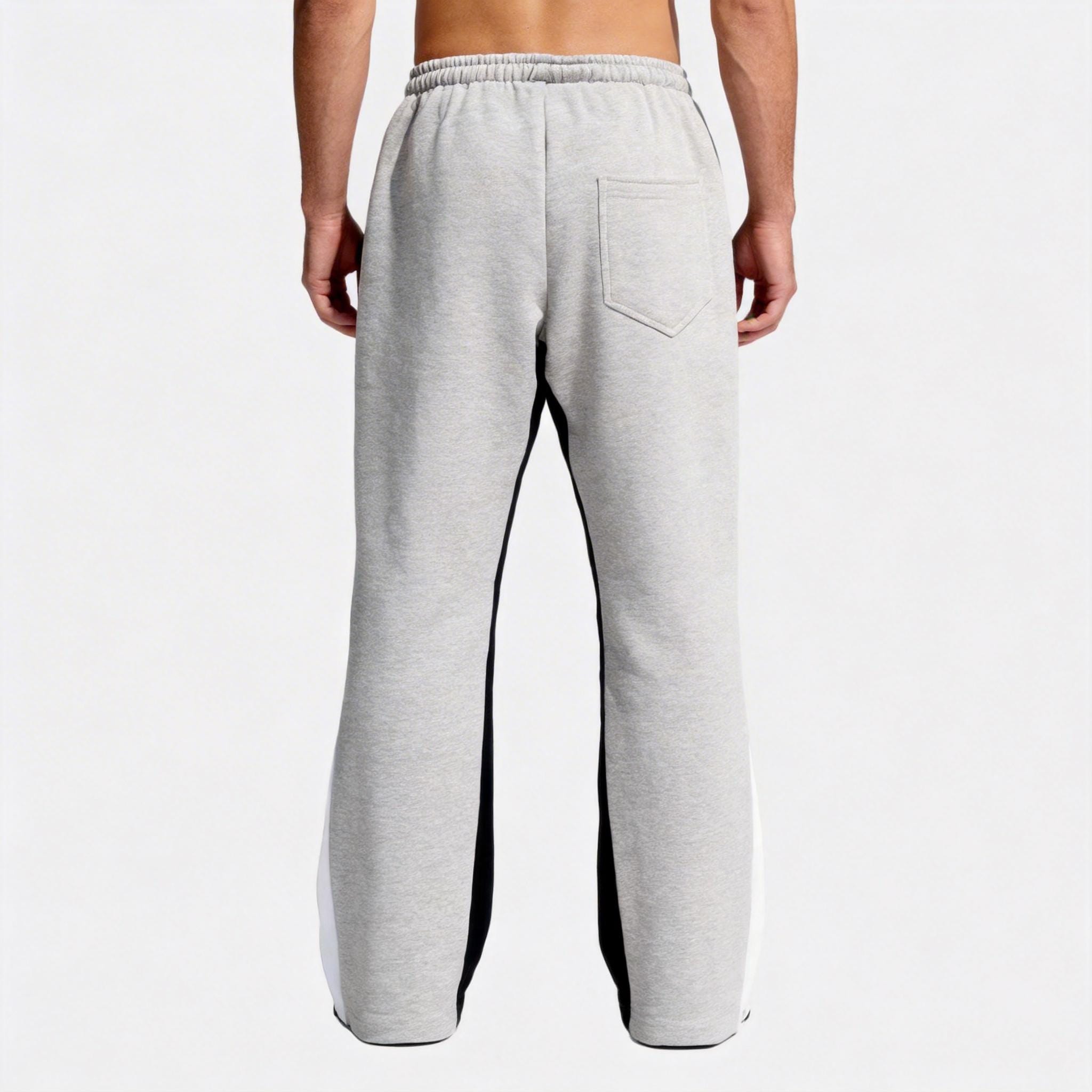 OEM Custom High Quality Casual Flared Jogger Track Pants Mid Waist 100% Cotton Heavyweight Patchwork Elastic Sweatpants Men