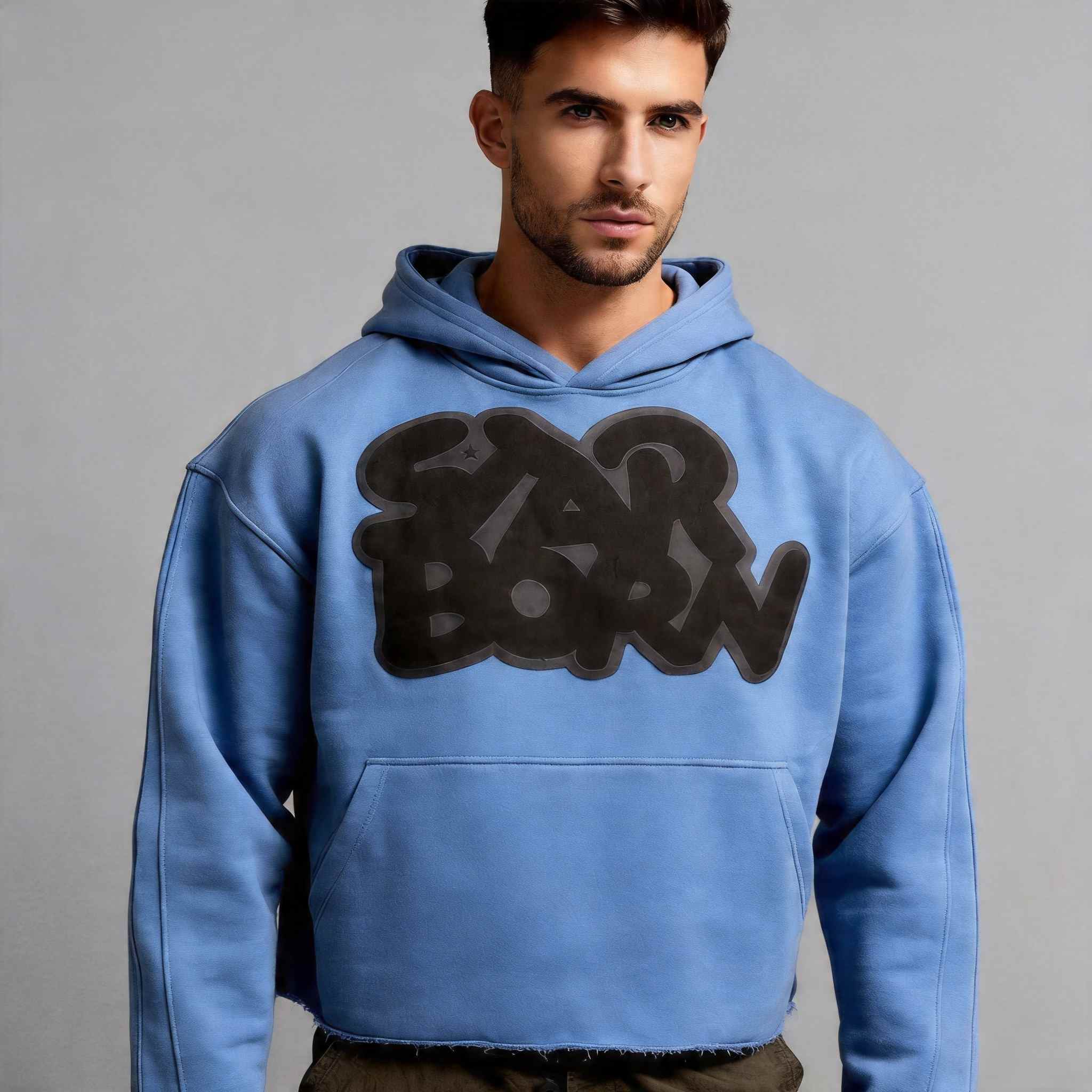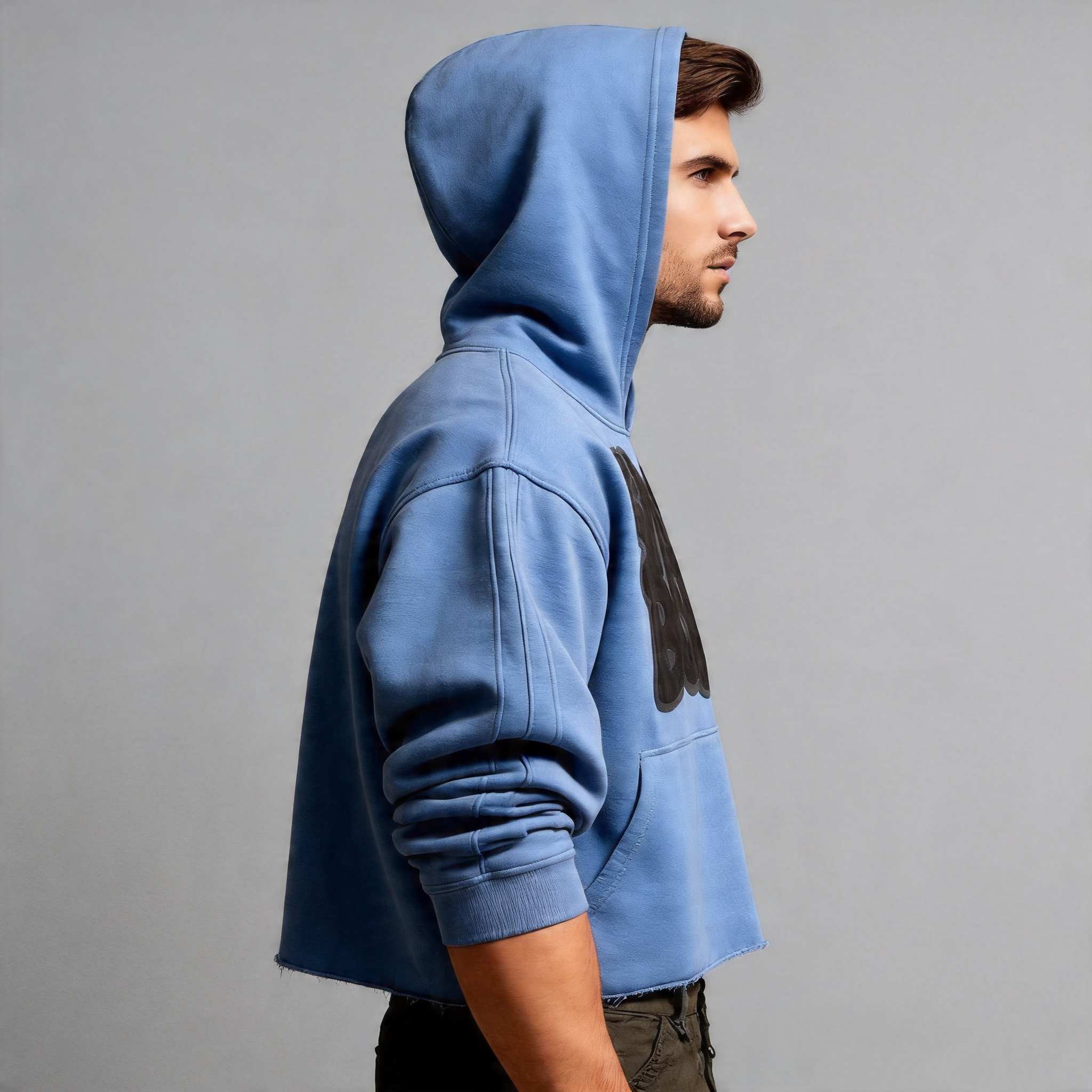 This custom cropped hoodie for men is a standout piece in high street fashion, featuring a large-scale, intricate screen print design on the back that captures the essence of Y2K style. The hoodie is crafted from premium, heavyweight cotton, offering both comfort and durability. With its cropped silhouette and hood, it’s perfect for adding an edgy touch to any casual outfit. Available for OEM & wholesale orders with a low MOQ (100 pieces).