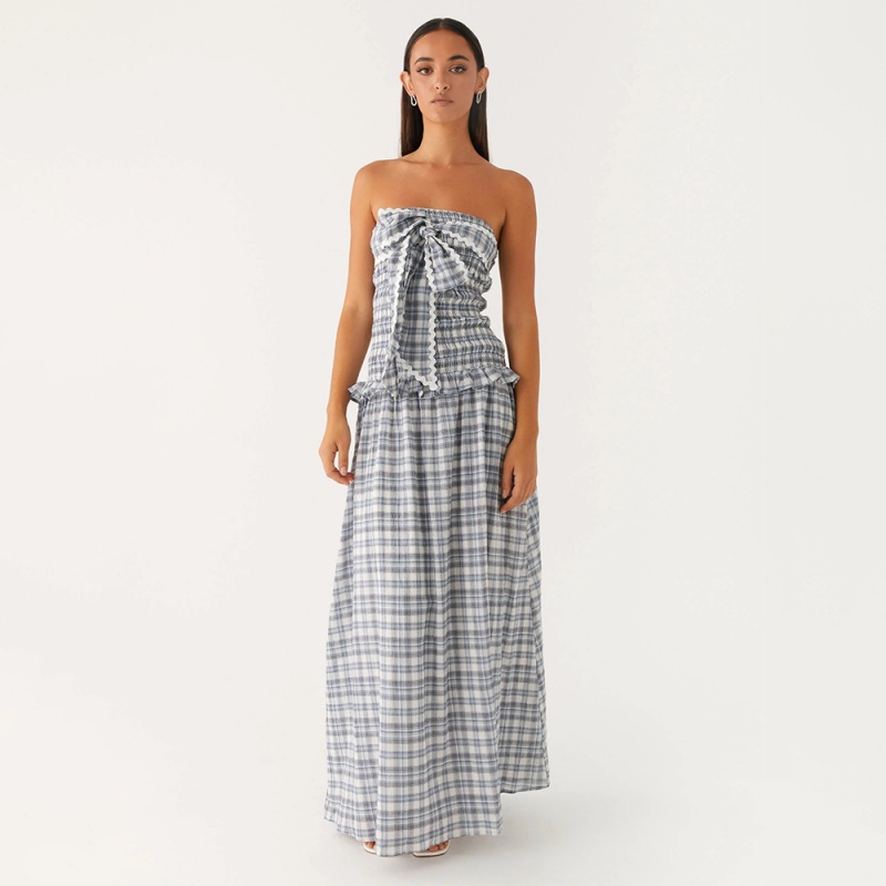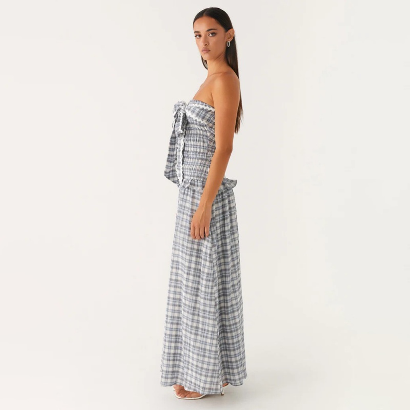 • Classic Plaid Pattern: The timeless blue and white plaid pattern adds a touch of vintage-inspired charm and sophistication, making this dress stand out with its unique aesthetic.