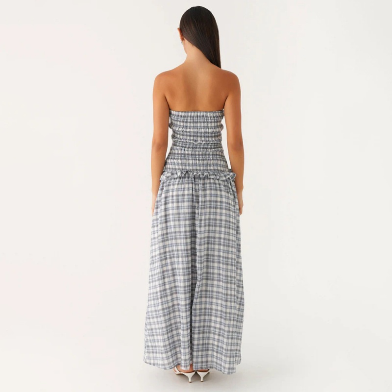 Women Bohemian Style Plaid Sleeveless Maxi Dress