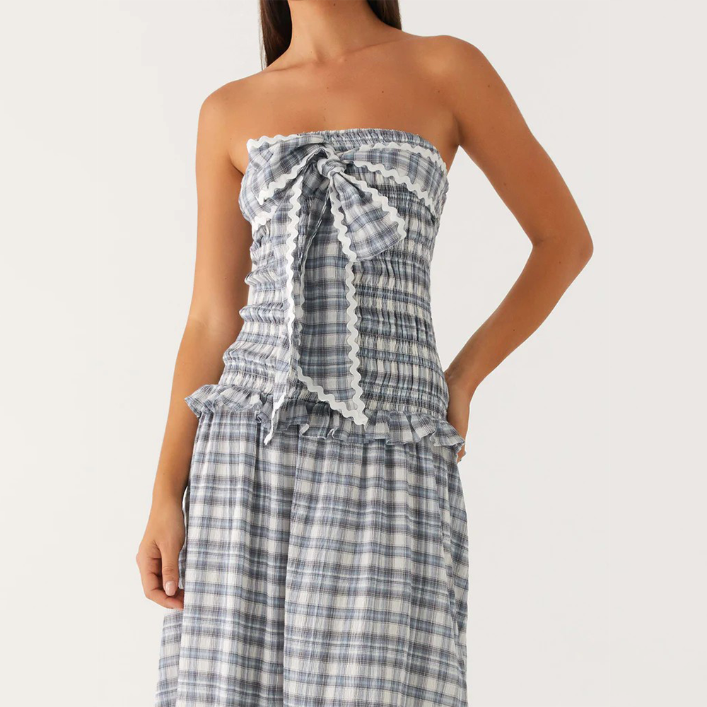 Classic plaid patterns and decorative ruffles enhance the Bohemian vibe. Design details add charm.