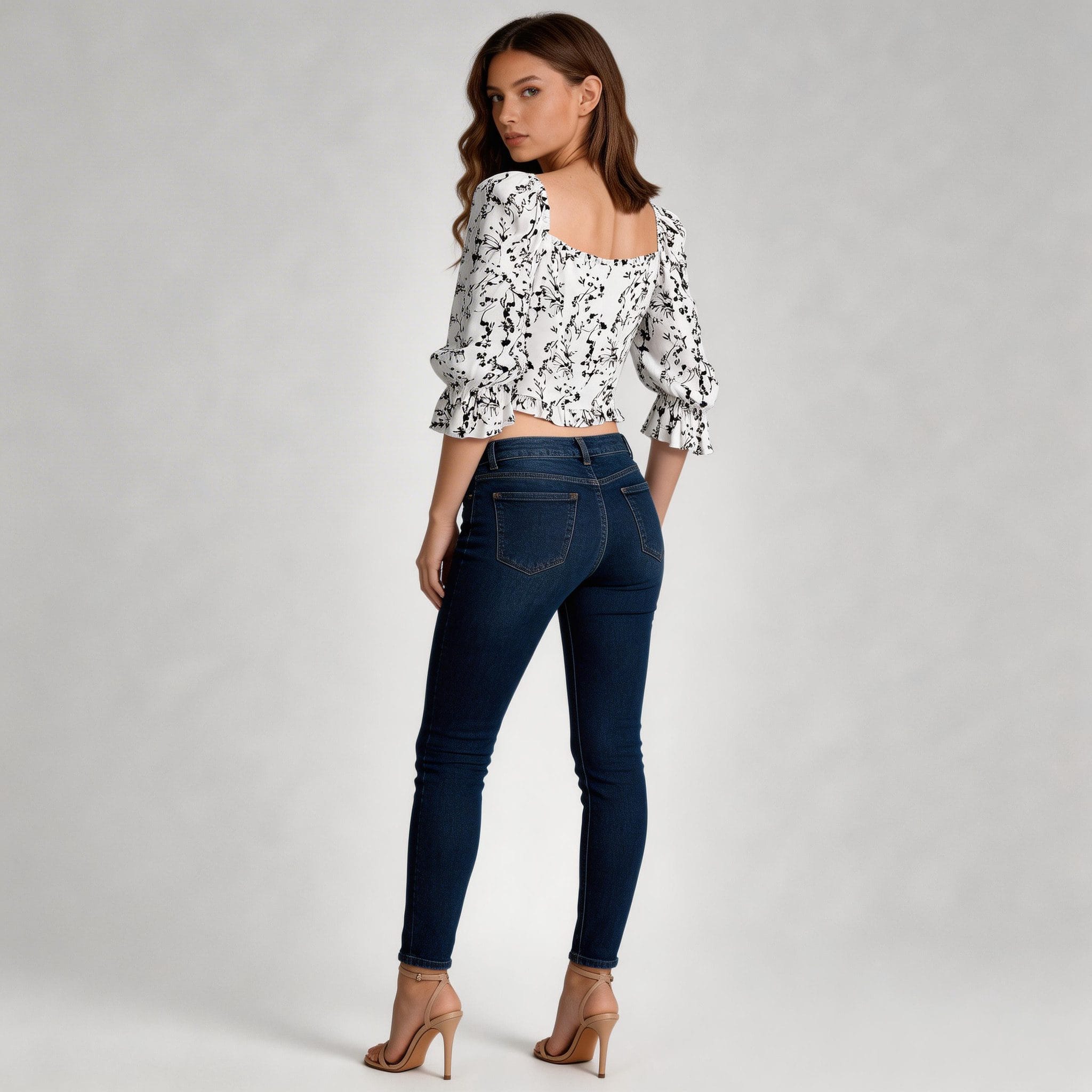 Match with Skinny Jeans: For a casual yet chic look, pair the crop top with dark blue skinny jeans. This combination is suitable for everyday wear, weekend outings, or casual gatherings.