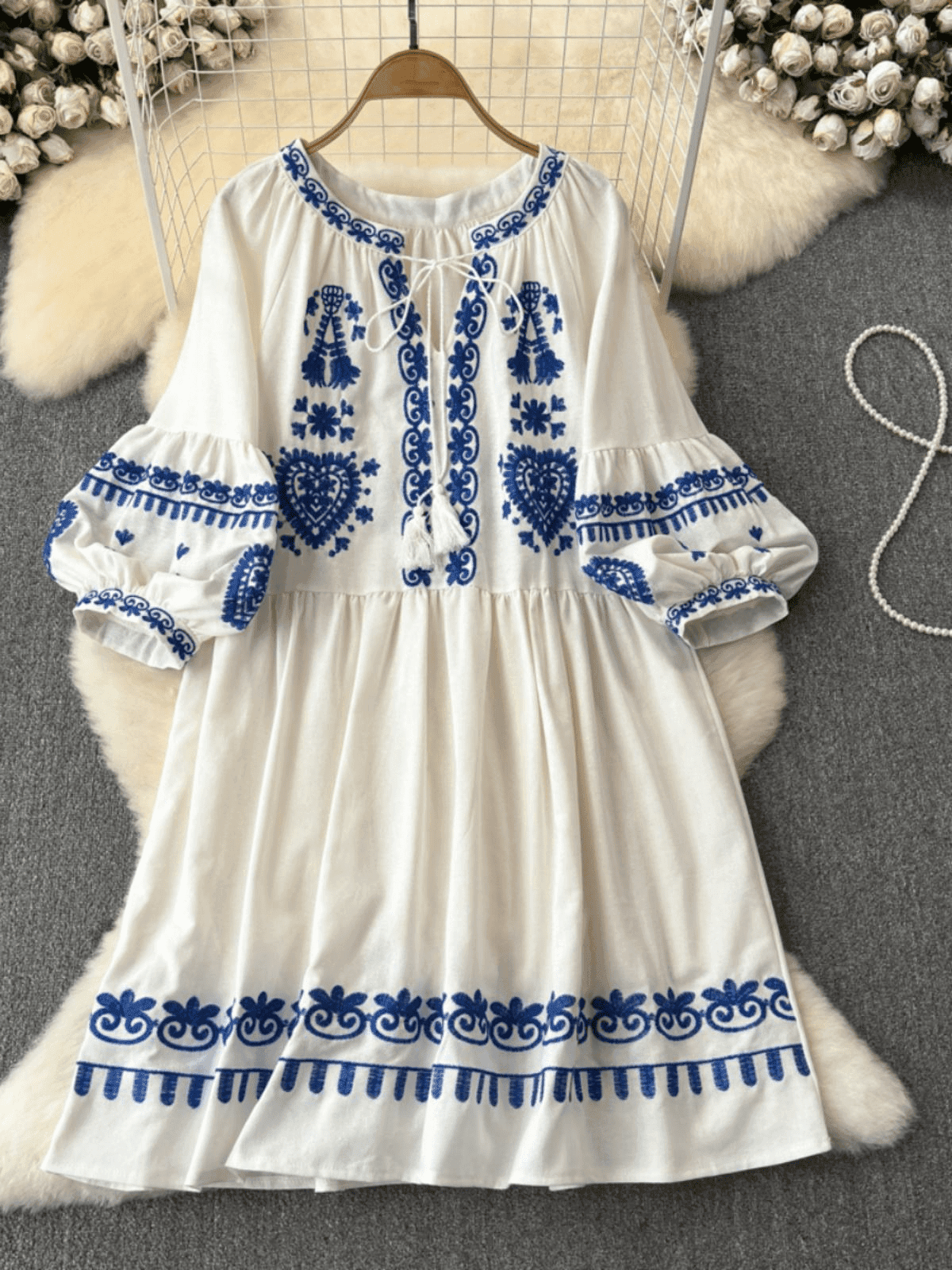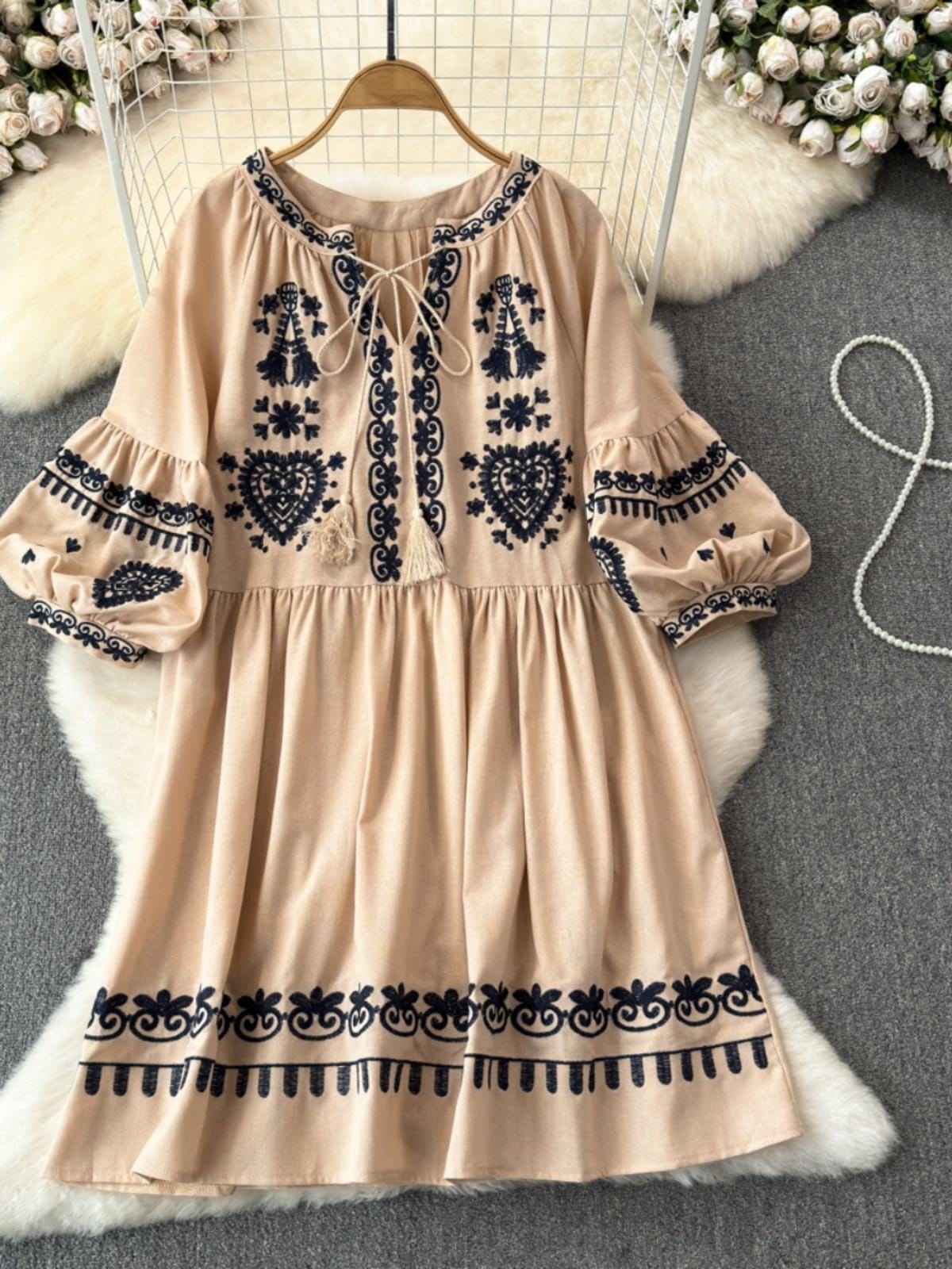 Loose – fitting Silhouette with High – waist Feel: The dress has a loose – fitting design that creates a comfortable and flowing look. Through its cut and the placement of the embroidery, it gives a high – waist impression, enhancing your curves in a subtle way.