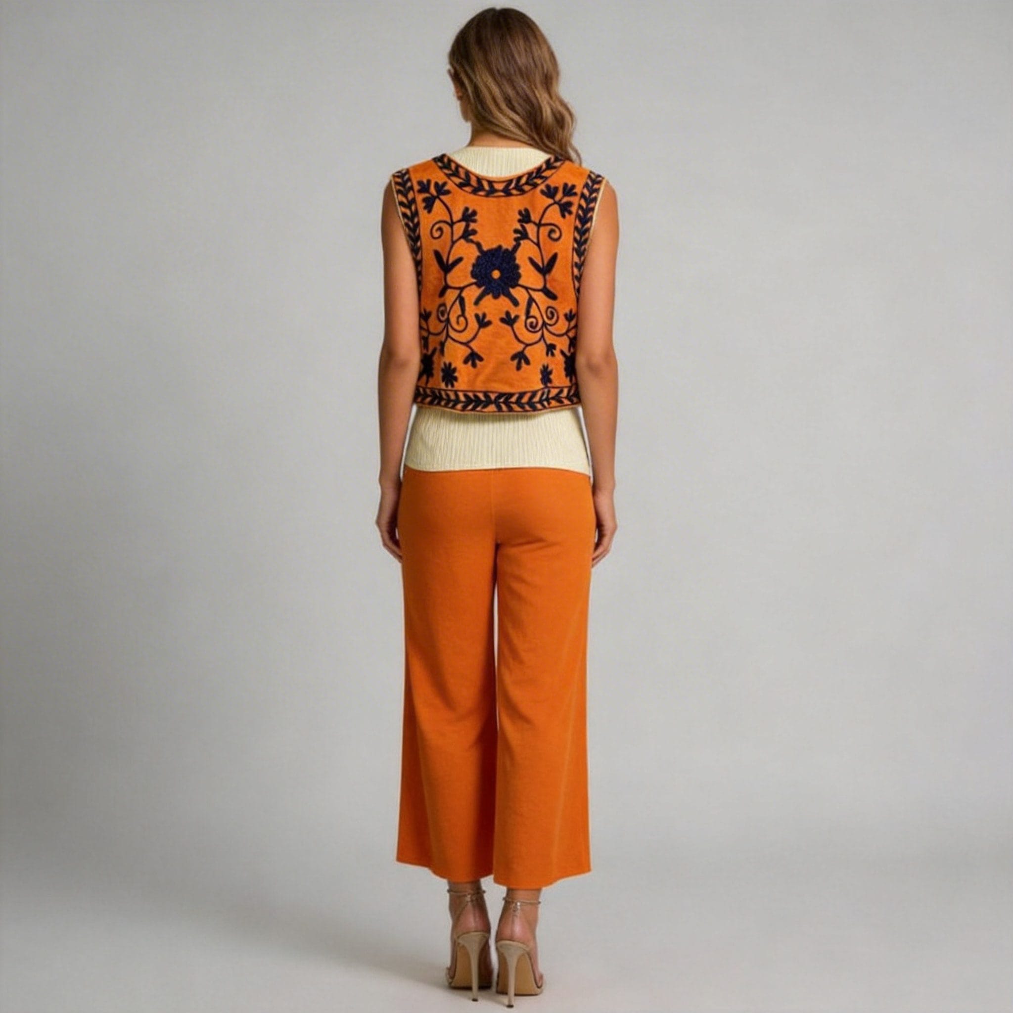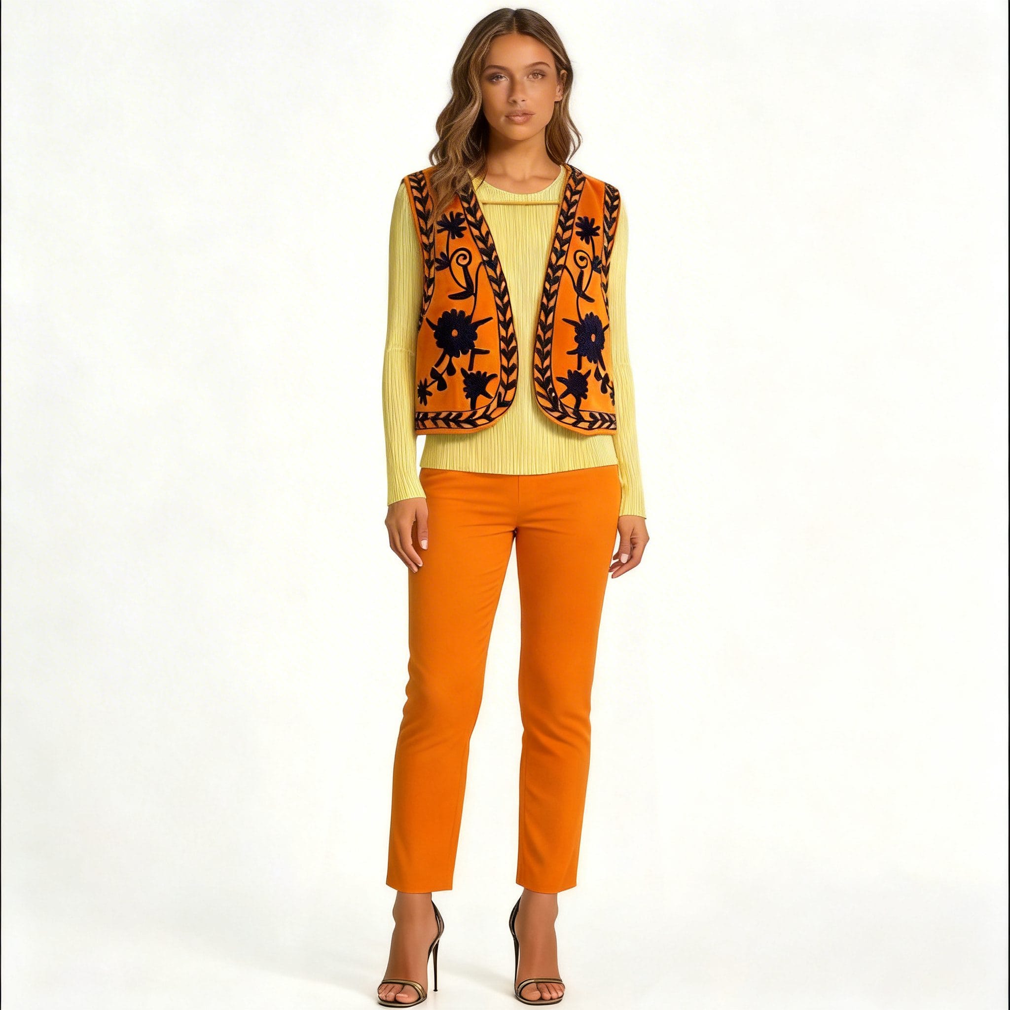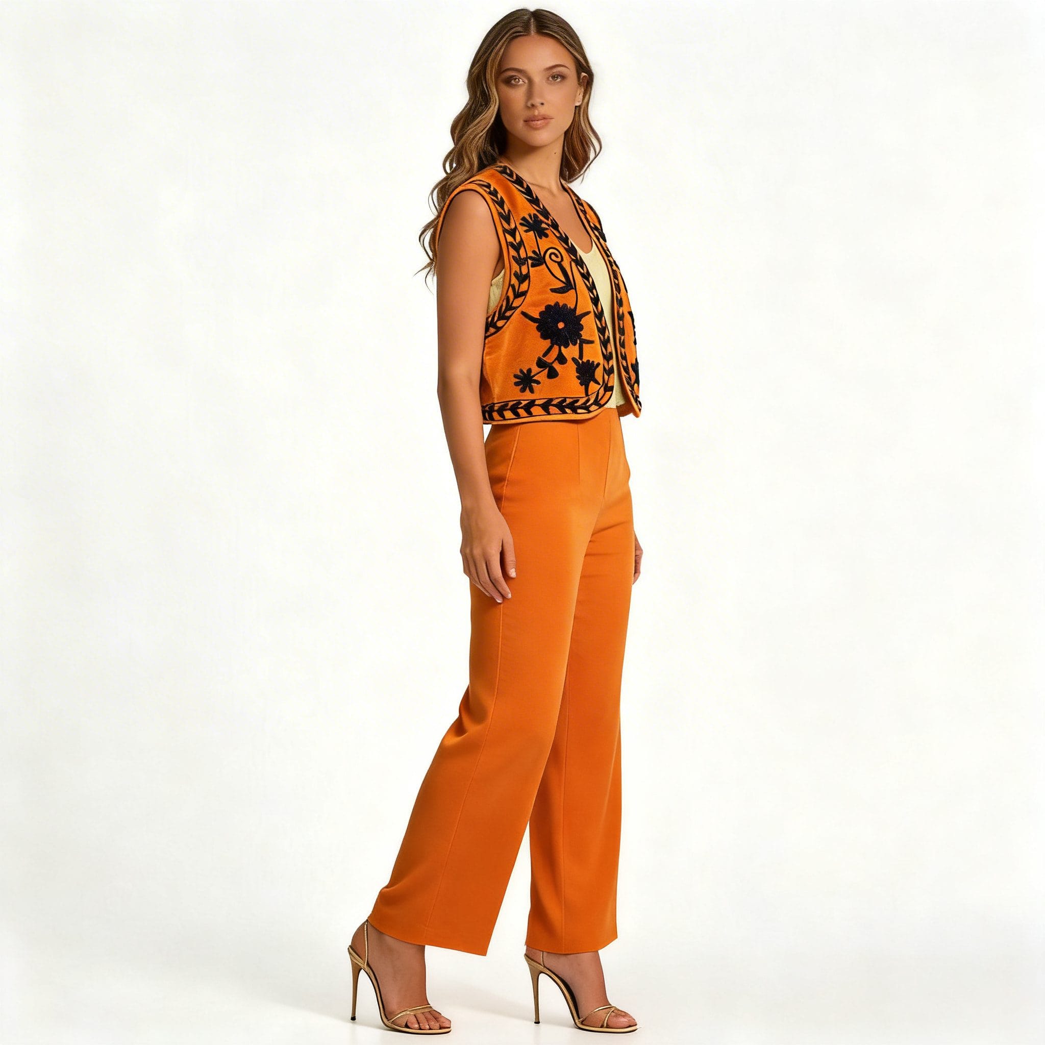 This embroidered vest is incredibly versatile, pairing well with everything from casual denim to elegant trousers. It serves as a statement piece for any outfit, suitable for both daytime and evening events, and offers endless styling possibilities for the modern woman.