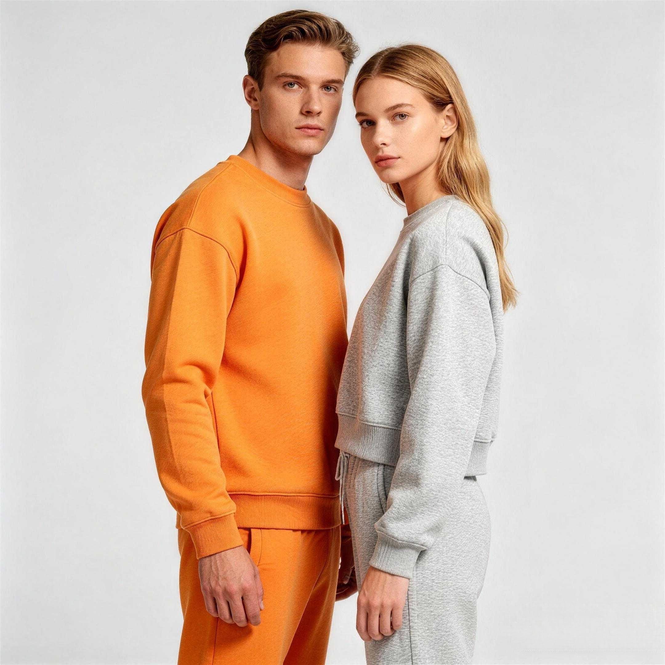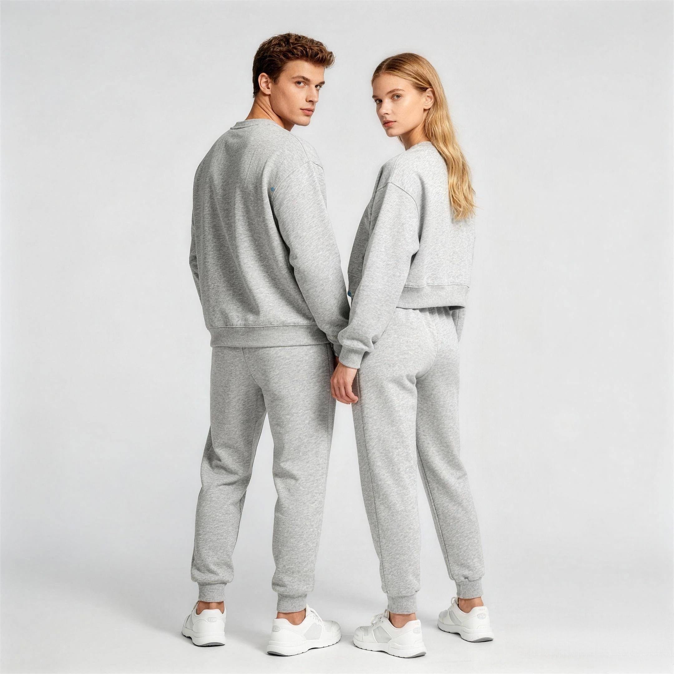We provide hoodie + jogger sets, crewneck + sweatpant sets, and cropped top + biker short sets for custom sportswear sets wholesale, available in coordinated colors and fabrics.